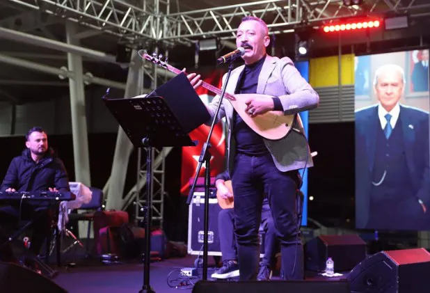 Coşku dolu gecede, Ülkü Ocakları Genel Merkez sanatçıları Osman Öztunç ve Alperen Kekilli, seslendirdikleri eserlerle programa katılanlardan büyük ilgi gördü.