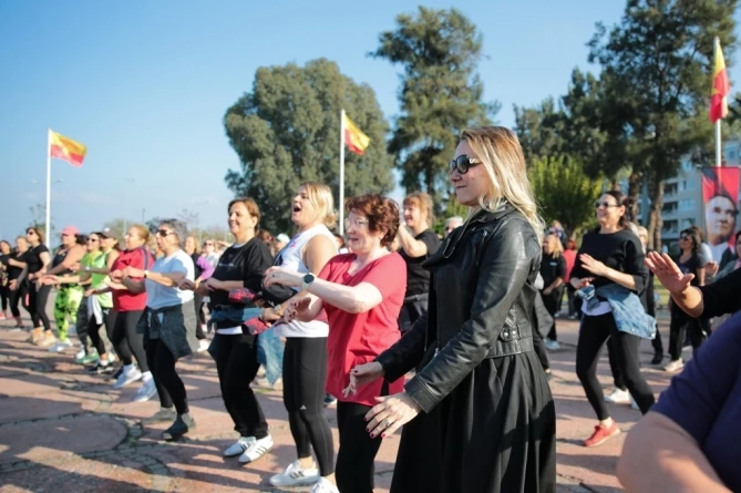 Sporun herkes için ulaşılabilir olması ve sağlıklı yaşamı teşvik etmek amacıyla faaliyetlerini sürdüren Konak Belediyesi, kadınları açık havada zumba dans etkinliğiyle buluşturdu. Güzelyalı Denizatı Parkı’nda düzenlenen aktivitede bir araya gelen kadınlar, eğitmenler eşliğinde zumba yaparak stres attı.Kursiyerlerin ve semt sakini kadınların yoğun ilgi gösterdiği etkinliğe Konak Belediye Başkanı Nilüfer Çınarlı Mutlu da katıldı. Coşkulu şarkılarla zumba yapan kadınlara eşlik eden Başkan Mutlu, dans ve sporu birleştirerek keyifli anlara sahne olan etkinliğin ilçenin farklı noktalarında da yapılacağını müjdeledi. Yaklaşık bir saat süren etkinlik İzmir Marşı ve ardından Cumhuriyet’in 100. yılı için bestelenen Parla Marşı’nın hep bir ağızdan söylenmesiyle son buldu.