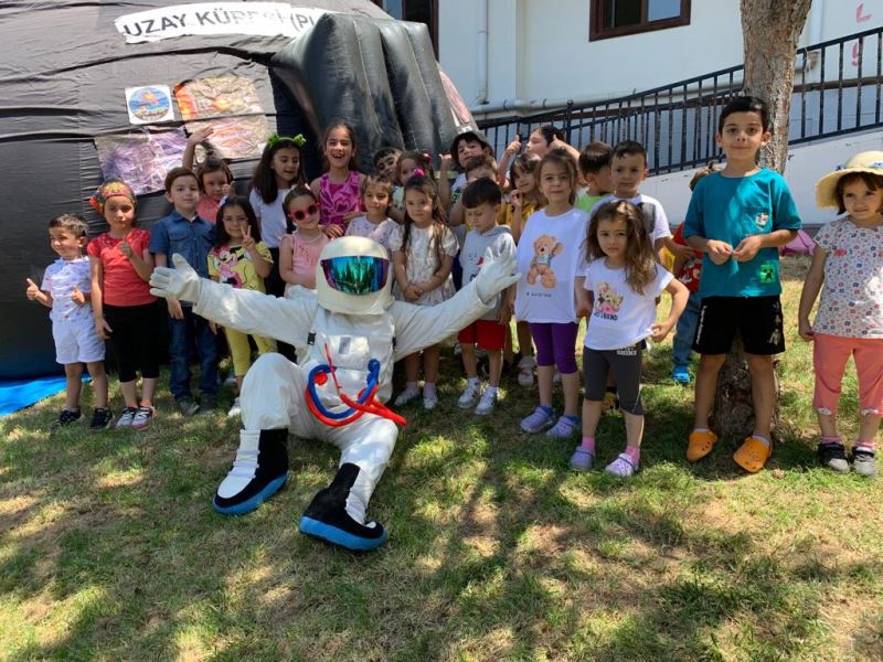 Mamak Belediyesi Yeşilbayır Bebek Kütüphanesi bahçesinde kurulan “Uzay Küresi” ne minikler büyük ilgi gösterdi.