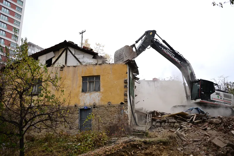 Mamak Belediyesi, Fahri Korutürk Mahallesi'nde halk sağlığını ve güvenliğini tehdit eden üç metruk yapıyı kontrollü şekilde yıktı.