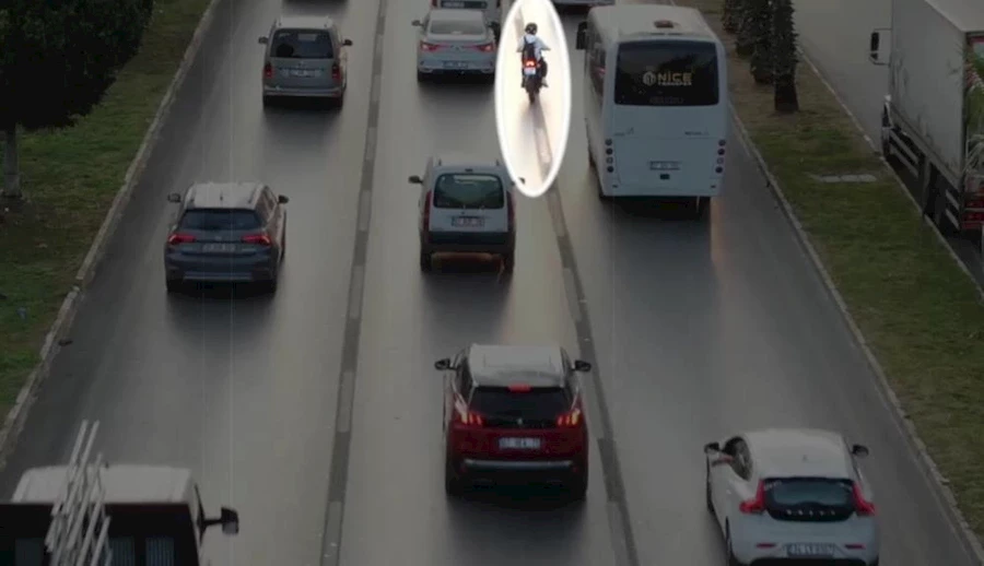 Antalya'da trafikte kural ihlali yapan motosikletlere yönelik dron destekli K5 denetimi gerçekleştirildi. Denetimlerde 108 motosikletliye ceza uygulanırken motosikletlerin ihlal anları kameralara yansıdı.