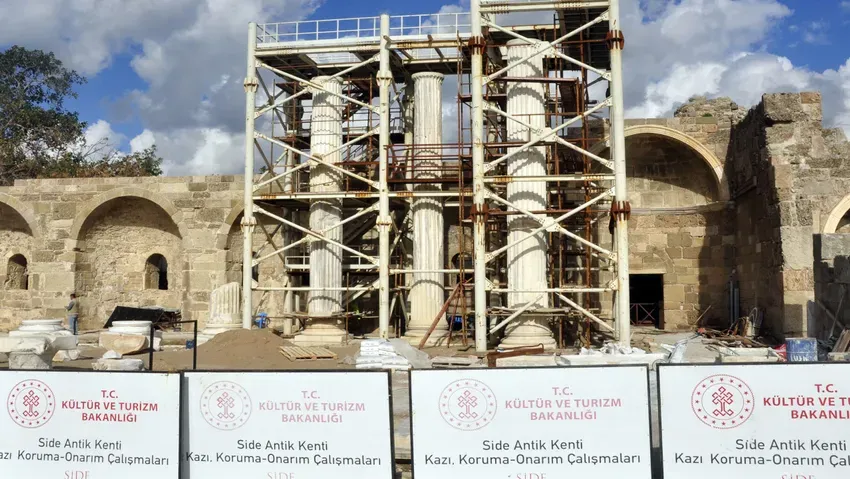 Antalya'daki Side Antik Kenti'nde 2 yıl önce kalıntıların gece kulübü girişi olarak kullanılması nedeniyle koruma ve onarım çalışması başlatılan Athena Tapınağı'ndaki restorasyonda sona yaklaşıldı. Temel yapısı ortaya çıkarılıp 4 sütunu yerine konulan tapınak, restorasyon sonrası ilk günkü görünümüne benzer haliyle ziyarete açılacak.