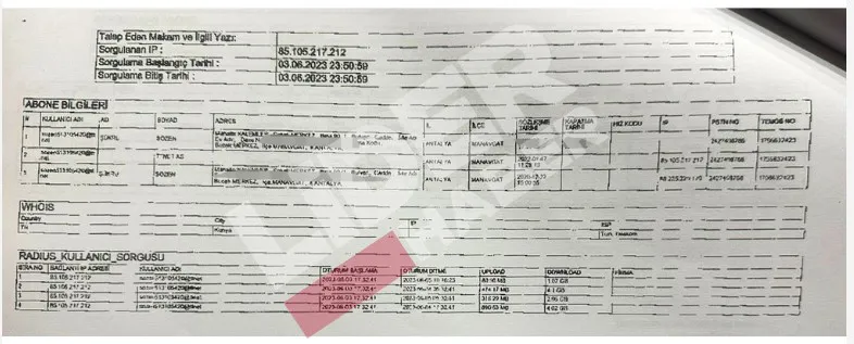 Emniyet Siber Suçlarla Mücadele ekipleri tarafından hazırlanan araştırma raporlarında, paylaşım sırasında kullanılan 85.105.217.212 numaralı IP adresinin, ilgili tarihlerde Şükrü Sözen adına kayıtlı internet aboneliği üzerinden bağlantı verdiği, aynı tarihlere denk gelen GSM hattının da Sözen’e ait T.C. kimlik numarasıyla kayıtlı olduğunun BTK sistemlerinde doğrulandığı tespit edildi. Sorgulama sonucunda erişim bilgilerinin başka bir kullanıcıya devredildiğine dair bir bulguya rastlanmadığı belirtilirken, teknik inceleme tutanaklarında, hesaptan “3 adet çocuk istismarı içerikli görüntünün yüklendiği” yönündeki NCMEC verilerinin teyit edildiği kaydedildi.