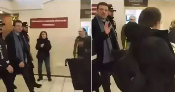 İki ayrı soruşturma kapsamında gözaltına alınan İstanbul Büyükşehir Belediye Başkanı (İBB) Ekrem İmamoğlu'nun adliyede Mali Şube'den iki polis eşliğinde yürüdüğü görüldü.