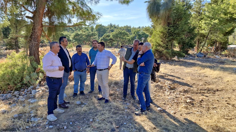 Başkan Yardımcısı Gül ve beraberindekiler, kapalı pazarın yapılacağı alanla ilgili Kemer Belediyesi Fen İşleri Müdürü Aziz Balaman'dan bilgi aldı.