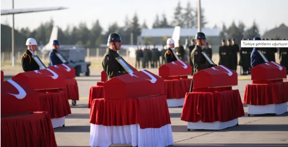 "Hava Pilot Yarbay Gökhan Korkmaz, Hava Pilot Binbaşı Serdar Uslu, Hava Pilot Binbaşı Nihat İlgen, Hava Pilot Üsteğmen Cüneyt Kandemir, Hava Uçak Bakım Üsteğmen Emre Mercan, Hava Uçak Bakım Astsubay Kıdemli Başçavuş Nuri Özcan, Hava Uçak Bakım Astsubay Kıdemli Başçavuş Ümit İnce, Hava Uçak Bakım Astsubay Başçavuş Hamdi Armağan Kaplan, Hava Uçak Bakım Astsubay Başçavuş Burak Özkan, Hava Uçak Bakım Astsubay Başçavuş İlker Aykut, Hava Uçak Bakım Astsubay Başçavuş Akın Karakuş, Hava Uçak Bakım Astsubay Başçavuş Emrah Kuran, Hava Uçak Bakım Astsubay Başçavuş Ramazan Yağız, Hava Uçak Bakım Astsubay Üstçavuş Emre Altıok, Hava Uçak Bakım Astsubay Üstçavuş Berkay Karaca, Hava Uçak Bakım Astsubay Üstçavuş Burak İbbiği, Hava Uçak Bakım Astsubay Üstçavuş İlhan Ongan, Hava İkmal Astsubay Kıdemli Çavuş Ahmet Yasir Kuyucu, Hava Ulaştırma Uzman Çavuş Cem Dolapci, Hava Ulaştırma Uzman Çavuş Emre Sayın" /TRTHABER