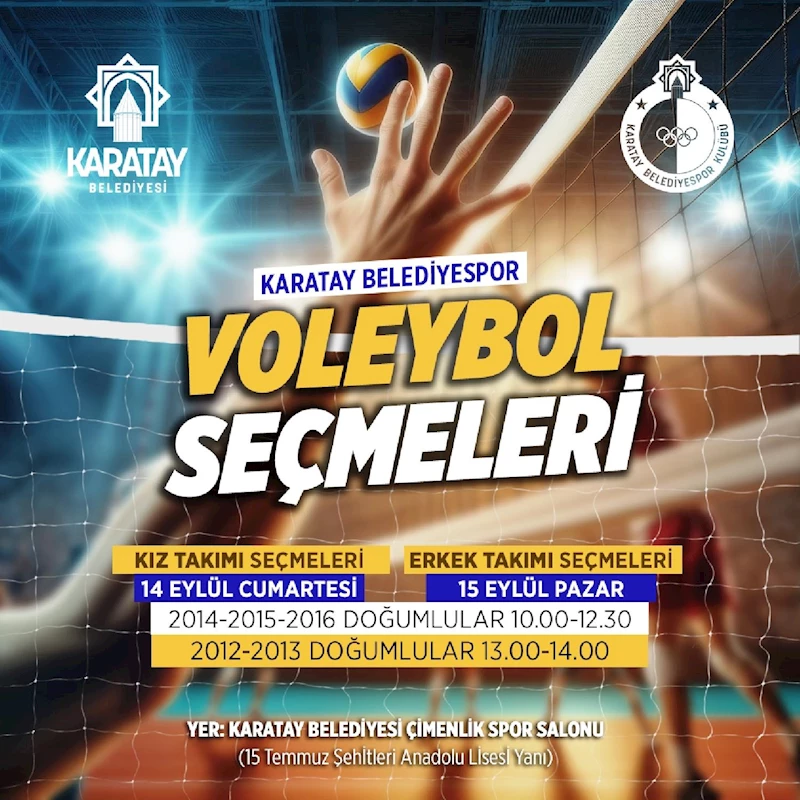 Karatay Belediyesi Spor Kulübü, geleceğin sporcularını belirlemek ve kulübün altyapısını daha da güçlendirmek için çalışmalarını sürdürüyor. Bu kapsamda voleybol takımına dahil edilmeleri amacıyla 2012 ile 2016 yılları arası yaş gruplarındaki kız ve erkek sporcuları kapsayan altyapı seçmeleri başlıyor.